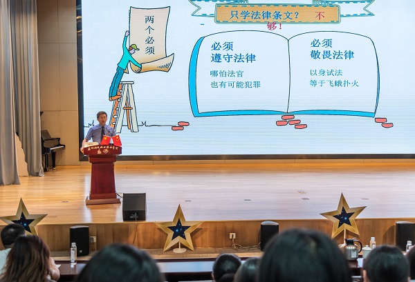 2020年7月2日下午,市院党组副书记、副检察长薛国骏受邀走进苏州科技城外国语学校,为300余名中学生上了一堂生动活泼的法治课。